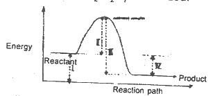 The diagram above shows the reaction path of an exothermic reaction. The heat of reaction is represented by