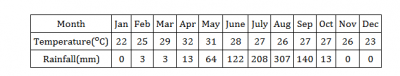 The table above shows the temperature and rainfall distribution of station Z. Study and use it to answer the question.Which month of the year has the highest temperature