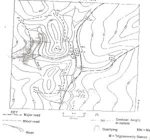 The relief pattern on the map reveals