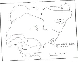 The largest concentration of domesticated livestock in Nigeria is found in the vegetation zone marked