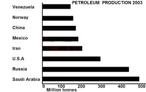 The combined petroleum production of Saudi Arabia and Russia in 2003 in million tonnes is approximately