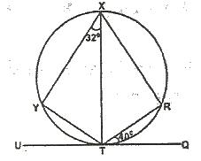 TQ is tangent to circle XYTR, < YXT = 32, RTQ = 40. Find < YTR