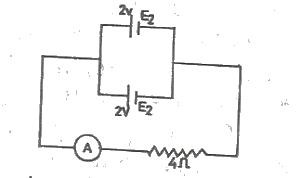 The internal resistance of each of the cells E1 and E2 Shown in the figure above is 2 Ohm. Calculate the total current in the circuit